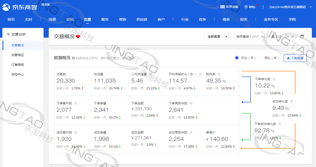 Babysmile海外旗艦店是一家京東店鋪,一直跟云淑合作京東代運(yùn)營,以下為4月店鋪銷量數(shù)據(jù)